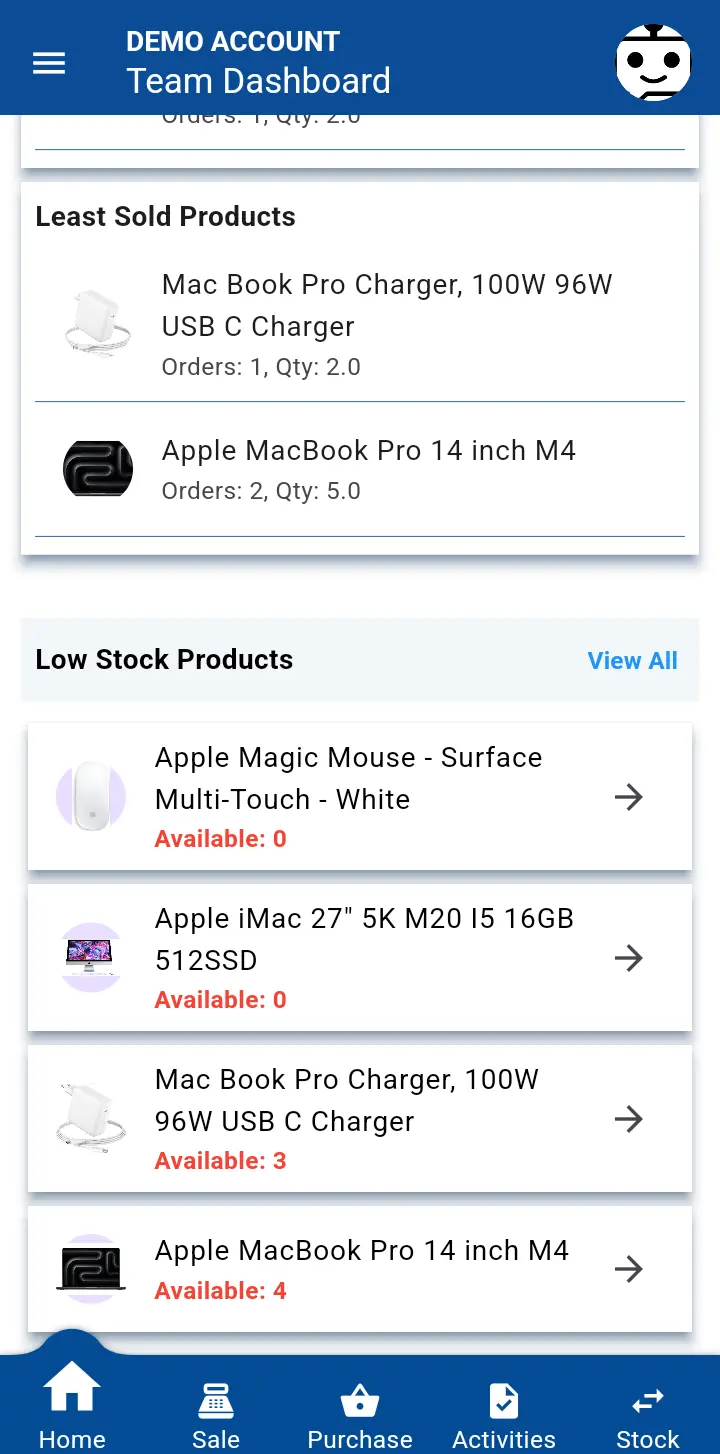 Enter code 1830 given for a demo account user to explore features of the app and get to know the solution the mobile application can bring to your business.